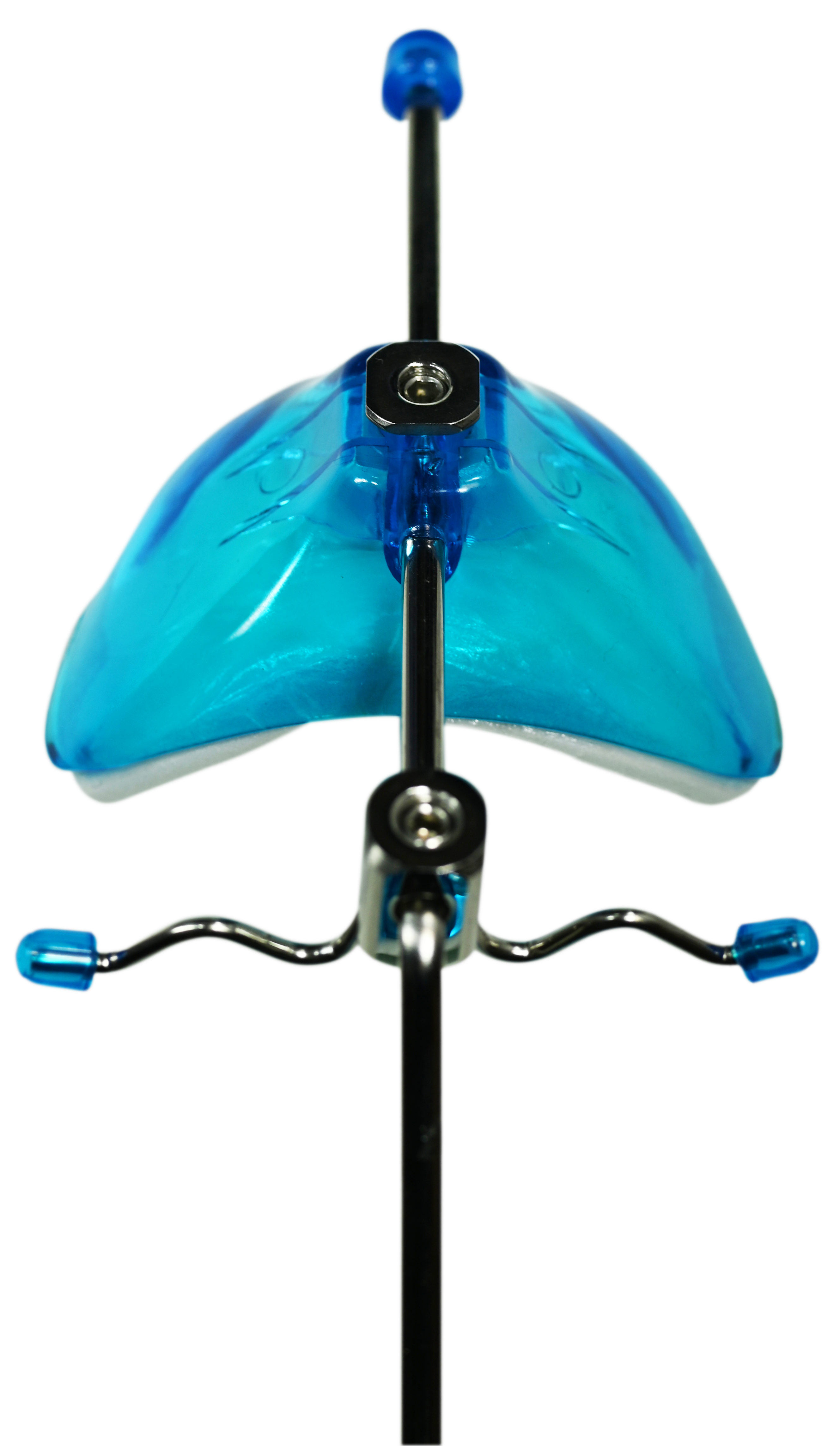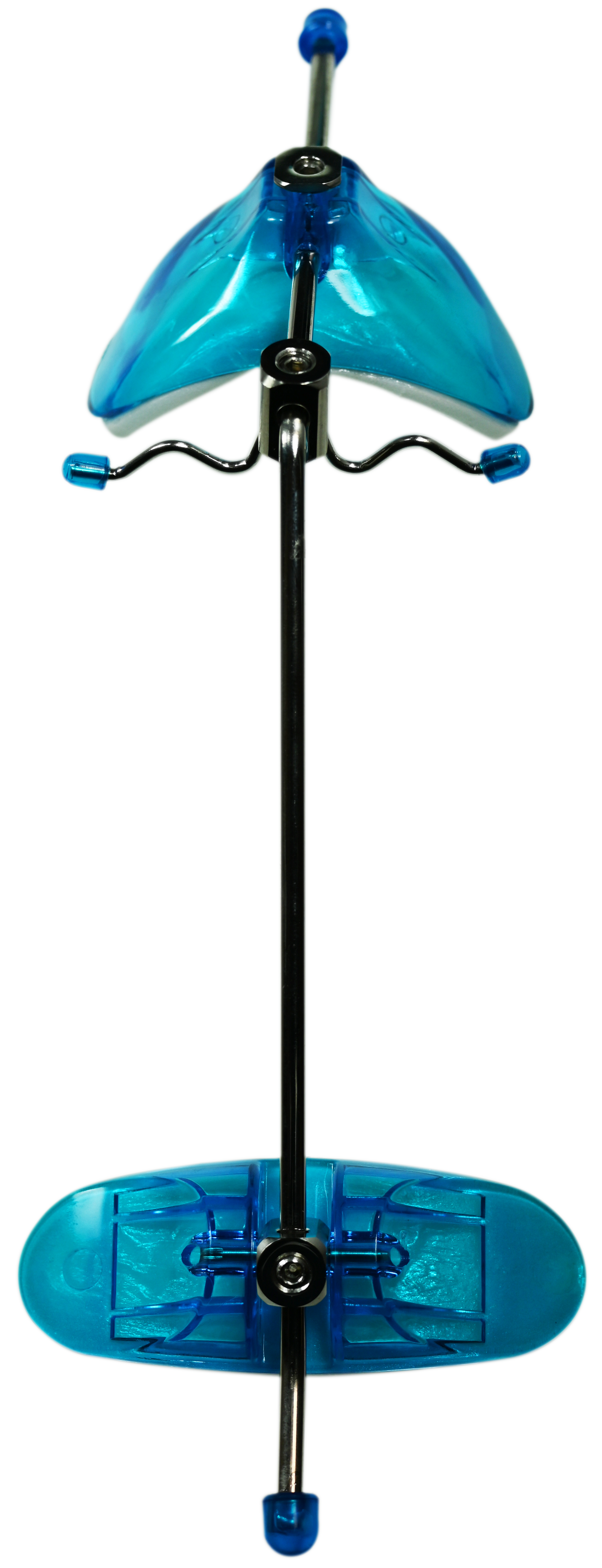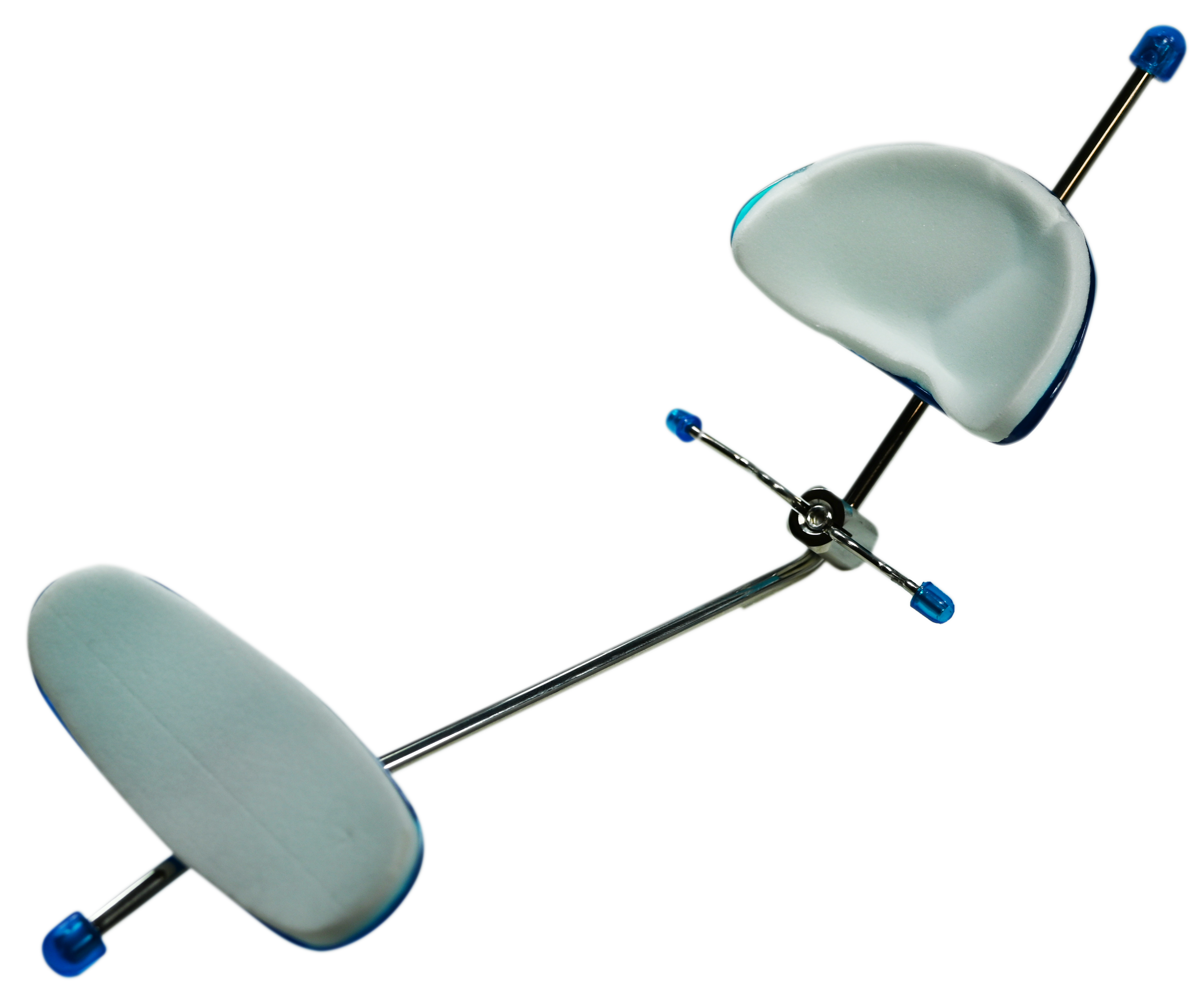 Ce masque de Petit est utilisé dans les cas de correction de classe III squelettique pour tracter le maxillaire vers l'avant et freiner la croissance antérieure de la mandibule. Il peut être facilement adapté à la taille des patients en le coupant avec une fraise aux niveaux de ses extrémités et en permettant de régler à l'aide d'une clé (fournie) la position des appuis frontaux et mentonniers.