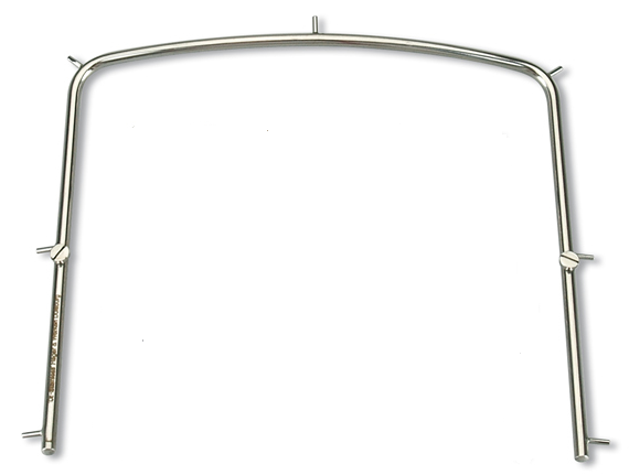 Le cadre à digue métallique maintient la digue en place, assurant isolation, visibilité et sécurité lors des soins dentaires.