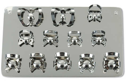 Le kit de 8 clamps est un ensemble d’accessoires essentiels utilisés pour maintenir la digue dentaire en place lors des interventions cliniques.