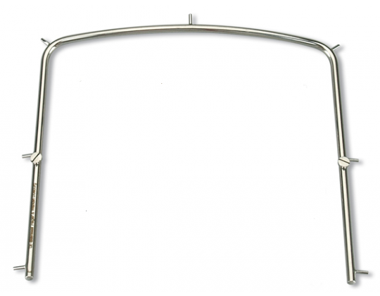 Le cadre à digue métallique maintient la digue en place, assurant isolation du champ opératoire, visibilité et sécurité lors des soins dentaires.