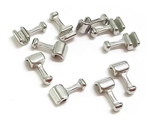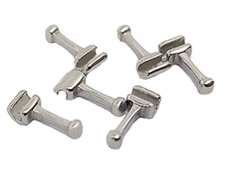 Potences discrètes et faciles à poser, conçus pour être sertis directement sur l’arc orthodontique. Leur boule lisse assure un excellent confort pour le patient tout en offrant un point d’ancrage fiable pour les élastiques ou les auxiliaires.