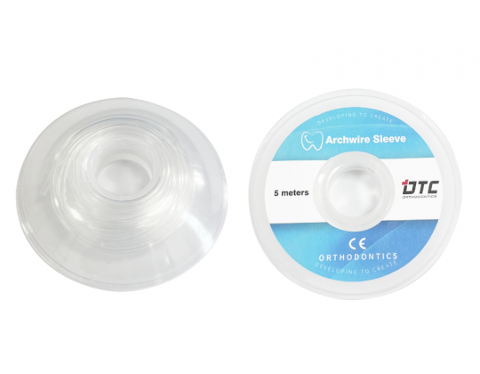 Gaine transparente pour arc orthodontique, conçue pour recouvrir partiellement ou totalement le fil afin de réduire les irritations des tissus mous. Sa flexibilité permet une mise en place aisée autour de l’arc, tandis que sa transparence garantit une esthétique optimale.